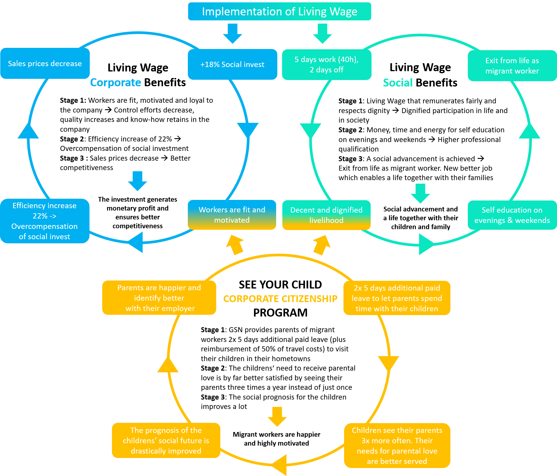 一个看似简单的措施,产生了巨大的效益。从经济角度来看,人们可以举出满意度的提高,从而提高员工的积极性和忠诚度。因此,在GSN只有很低的波动,有价值的技术也留在了公司。最重要的是社会和情感方面。家庭--父母、子女、祖父母和大家庭--通过加强联系、情感稳定以及满意和安全,在许多方面受益。这些价值是无法用数字来衡量的。
